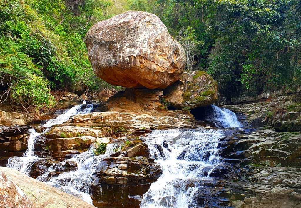 The next waterfall along Clover Hill Trail is Mulangong Falls. A beautiful waterfall where the water splits around either side of a balancing boulder… cool huh?! And here it is on another trip with even more flow!
