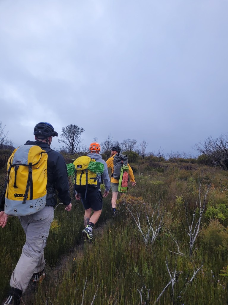 Finally at the end of the abseils, we had a surprisingly long creek/boulder hop to get to our exit ridge. I remember feeling so utterly exhausted moving along the bouldery creek I wasn’t sure how I was going to go getting up the 600mm elevated exit, especially being the only woman in the group.