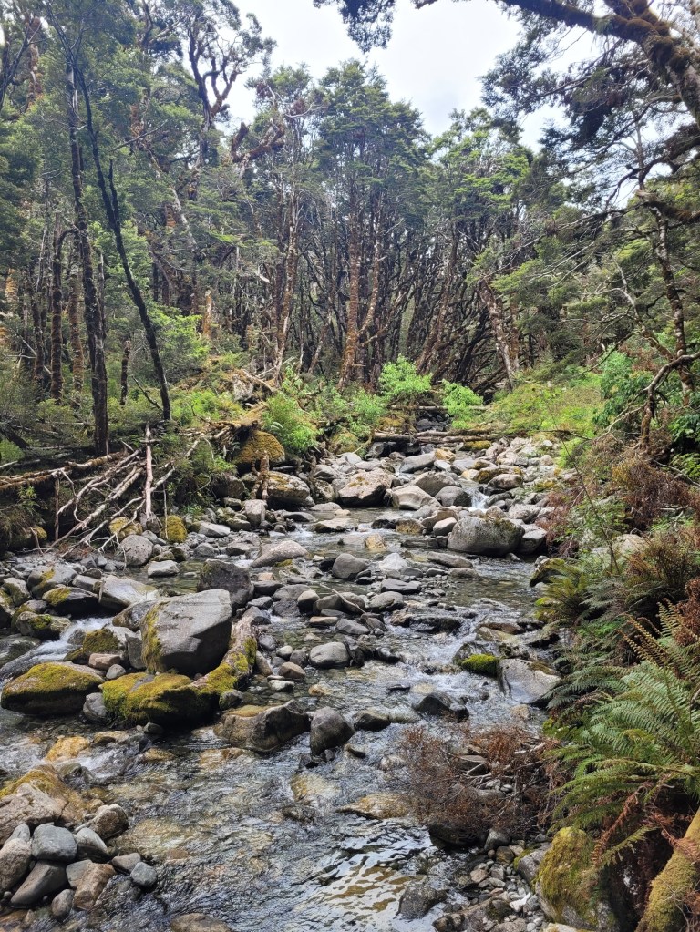 The scenery this morning was quite different to the other mornings so far. Walking out from Lake Mackenzie was quite beautiful, and as much as I love the mountains I was looking forward to walking out through the forest again.