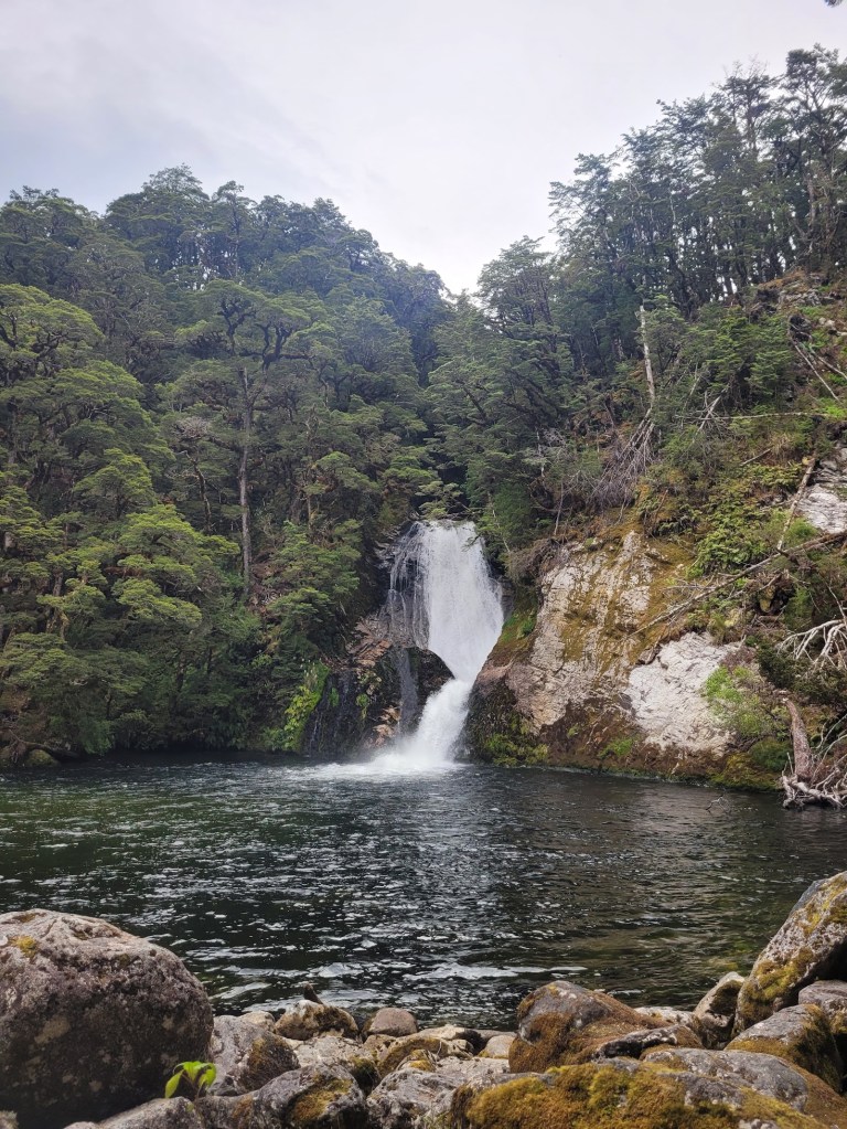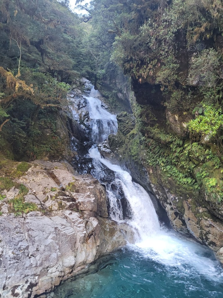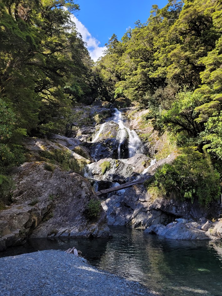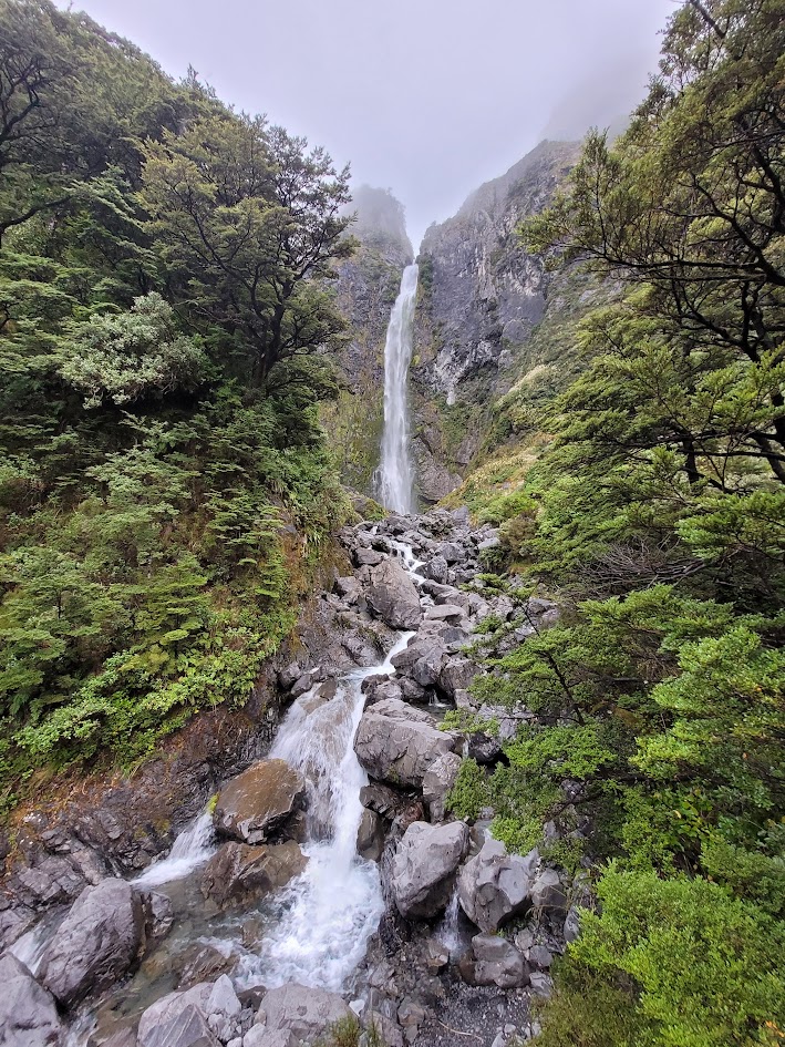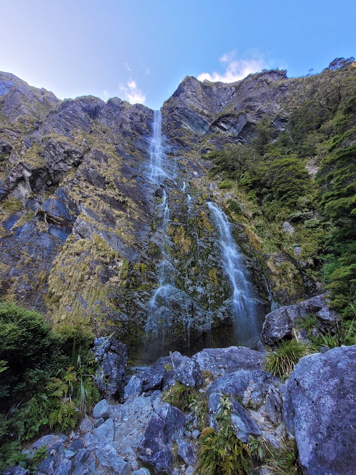 First glimpse of Earland Falls! One of the highlights of the Routeburn Track.