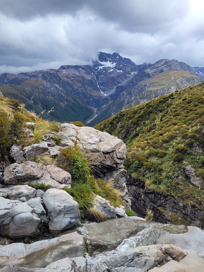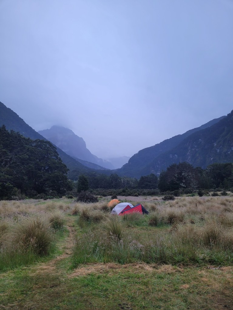 I started the day very early for such a small walk and as I got to Routeburn Flats hut it started to bucket down with rain, so I sought shelter and had some snacks and a nap to wait it out. It finally cleared and these were the camp views!