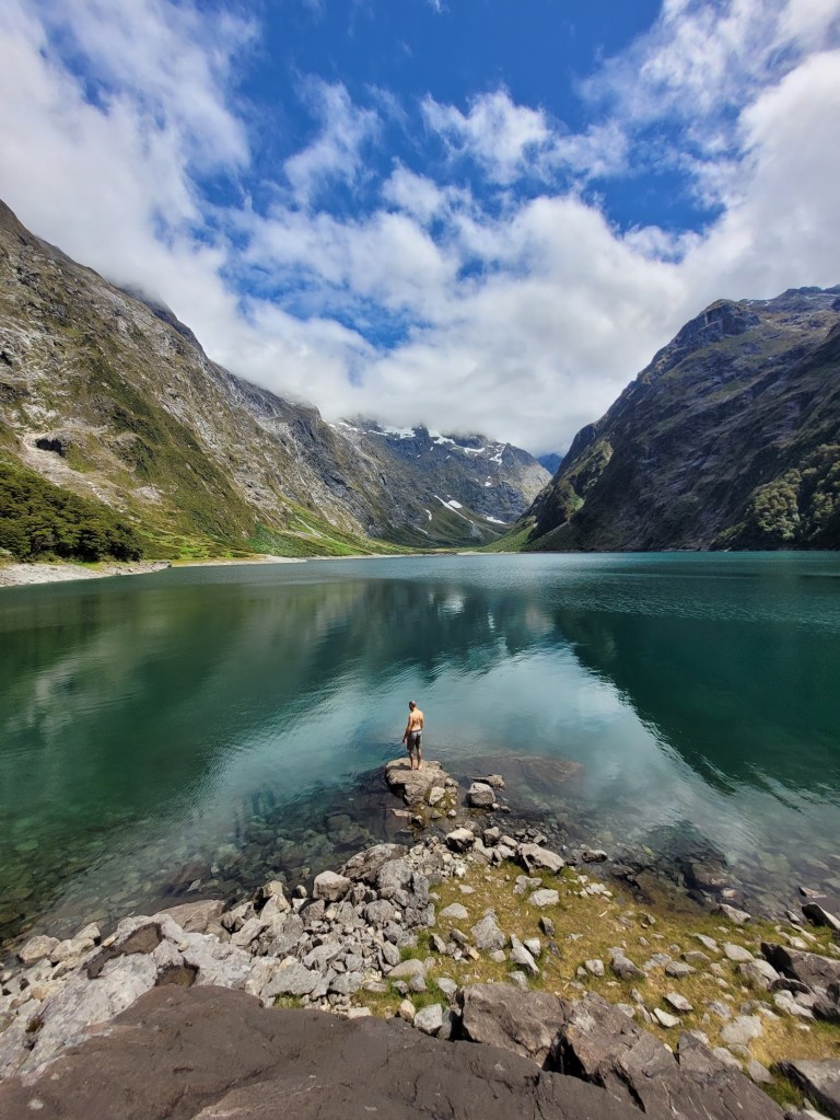 I had no idea what I was in for on this hike. I had never heard about Lake Marian before and was following a recommendation from a friend (who wanted to keep it a secret to see our reactions). It looks like we visited NZ during a bit of a dry spell, as other photos I’ve seen online have dozens if not hundreds of waterfalls flowing into the alpine lake as the snow melts!