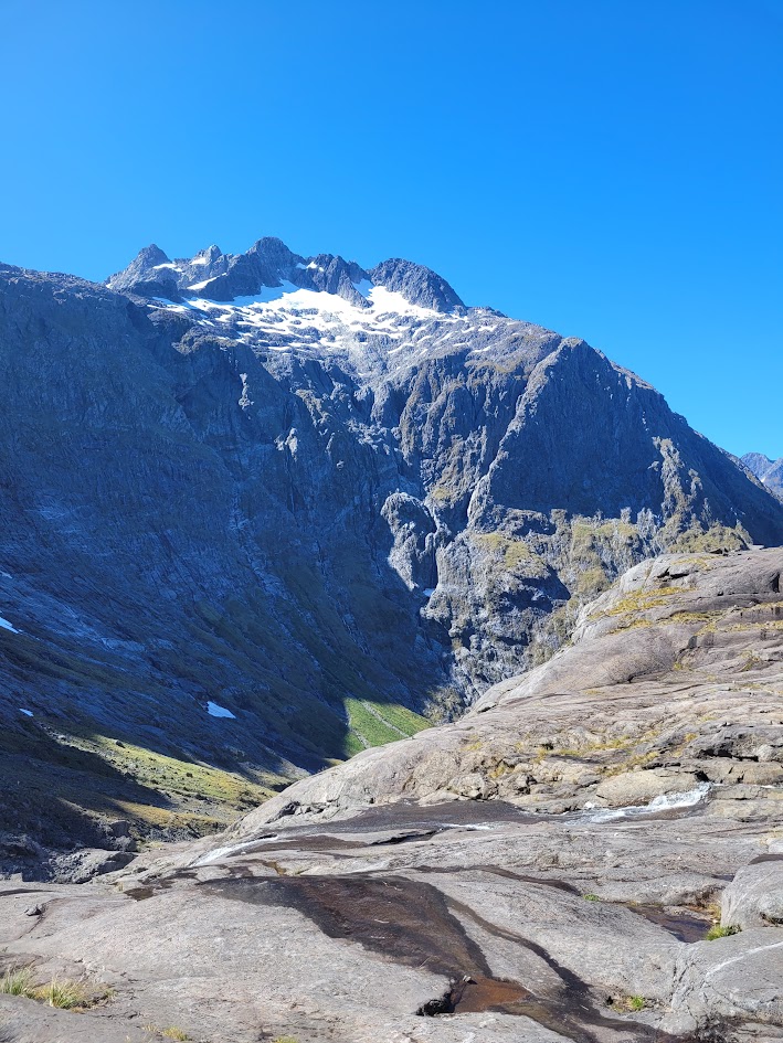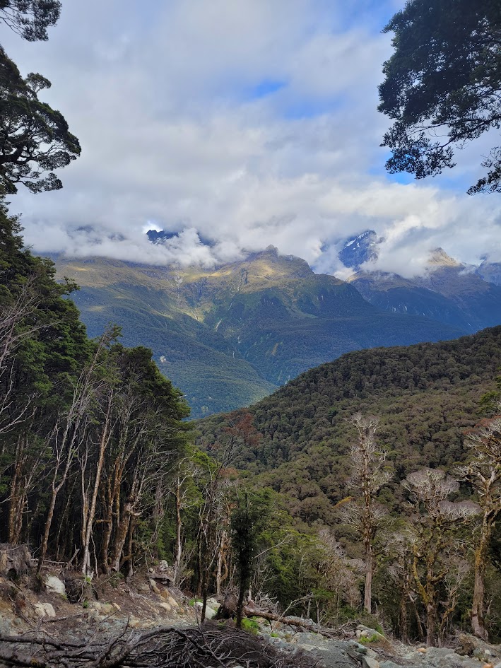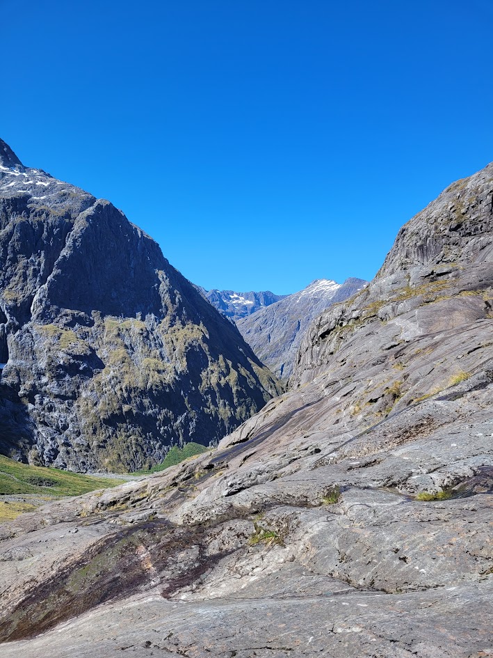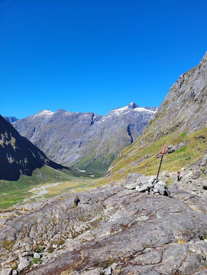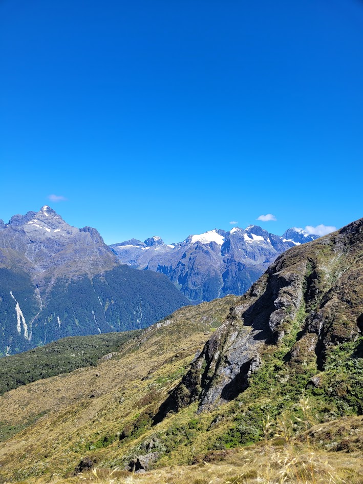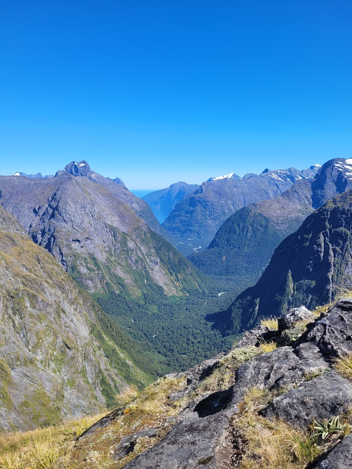 Finally up on the saddle! With views all the way through to Milford Sound.