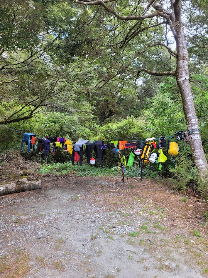 After each canyon we were meticulous about washing our gear to stop the spread of Didymo, so each camp in the evening looked a little like this.