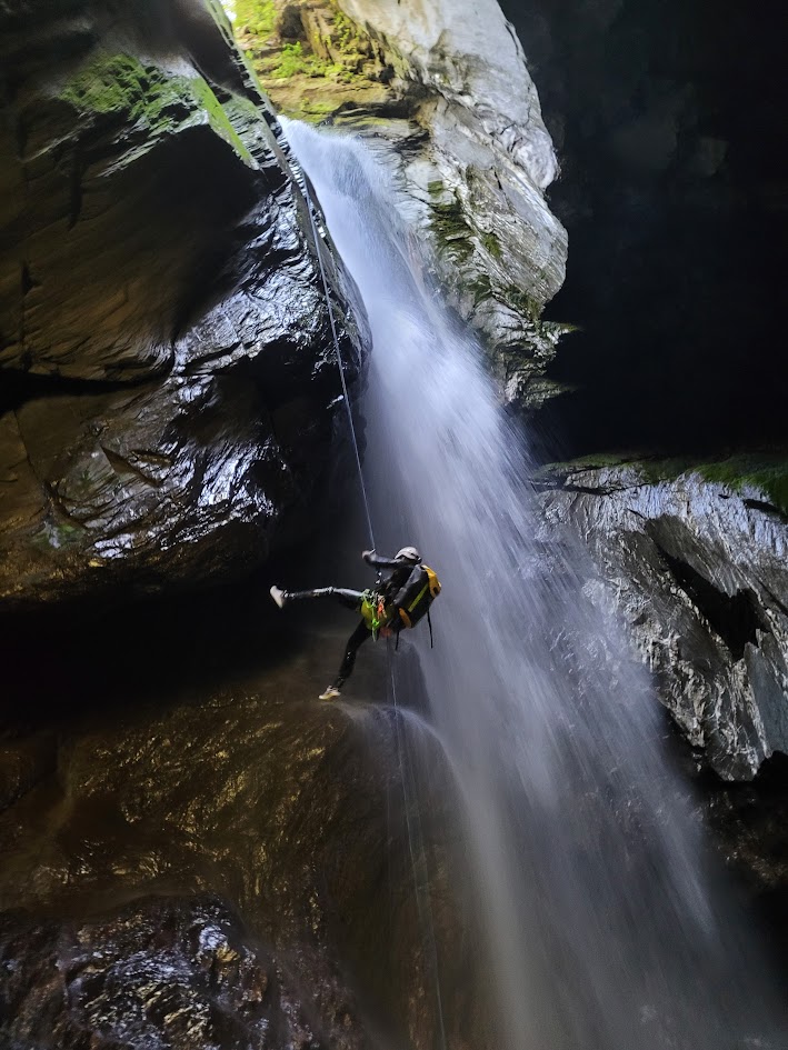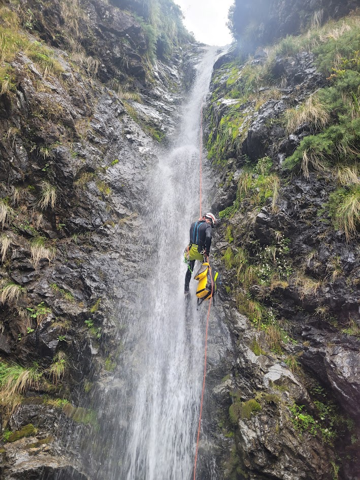 I did remember being quite confused on the day, as I had screenshots of the canyon guidebook for the abseils and trip report. From the guidebook photos they were meant to be quite flat rock drops (if that makes sense) whereas what we were abseiling was a rocky, caverny, complex boulder field with waterfalls.