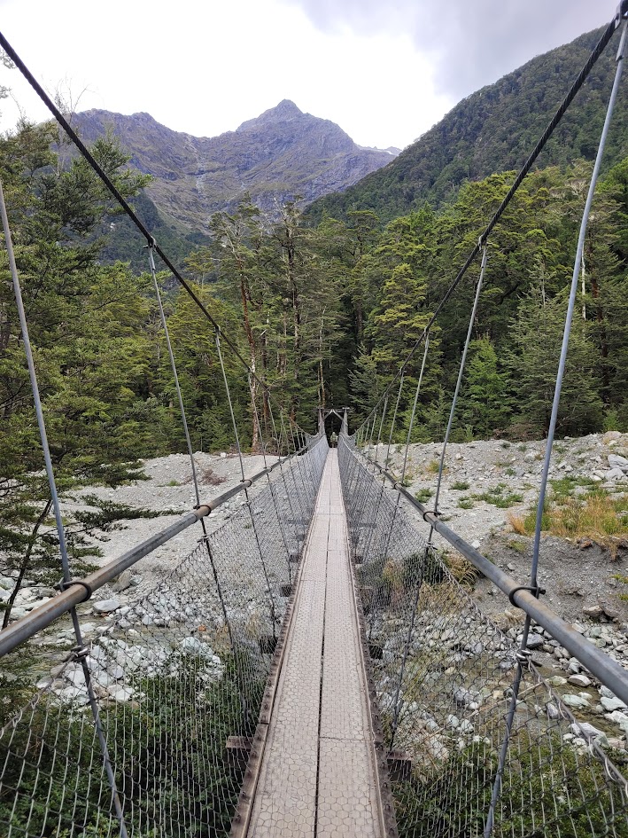 The first day was pretty cruisey, I only needed to hike 5km to the Routeburn Flats Campsite. The walk was pretty easy going and featured even more famous NZ swing bridges!